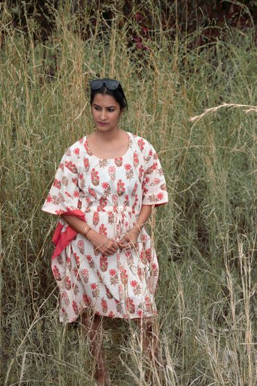 Woodblock printing is a technique for printing texts, images and patterns on cloth, which has been used widely in India since antiquity. Textiles are printed with a carved wood block covered in dye. The wood block is carefully carved by hand: White areas are cut away with a knife or chisel leaving the image to show in black or any other colour at the original surface level. Block print textiles are easily recognized by their typical patterns.
